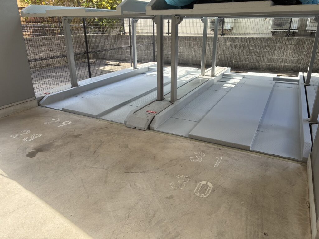 機械式駐車場のパレット腐食により、サビ・穴が多く見受けられたため、今後ご利用者様が増えるとのことで補修工事を実施いたしました。