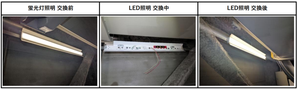 当社では今回、駐車場内の照明を蛍光灯からLEDへ更新しました。